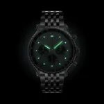 The stainless steel bracelet pairs seamlessly with the case, providing both visual harmony and everyday wearability. With a 22/18 mm taper and secure folding clasp, the bracelet ensures comfort over long durations.