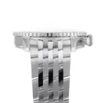 This model is equipped with an integrated seven-row stainless steel bracelet that provides a robust yet flexible fit. Combined with the domed sapphire crystal and contoured lugs, it ensures excellent wrist comfort and timeless appeal.