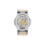 The Patek Philippe Nautilus 5724G-001 perfectly blends luxury sports design with fine mechanical complications. Crafted in 18K white gold, this watch features a sunburst blue dial with the signature horizontal embossed pattern and baguette diamond hour markers, elevating its elegance to new heights.