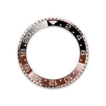 Bidirectional rotatable 24-hour graduated bezel. Two-colour blue and red Cerachrom insert in ceramic, moulded numerals and graduations
