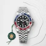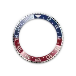 Bidirectional rotatable 24-hour graduated bezel. Two-colour blue and red Cerachrom insert in ceramic, moulded numerals and graduations