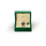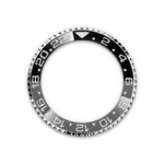 Bidirectional rotatable 24-hour graduated bezel. Two-colour blue and red Cerachrom insert in ceramic, moulded numerals and graduations